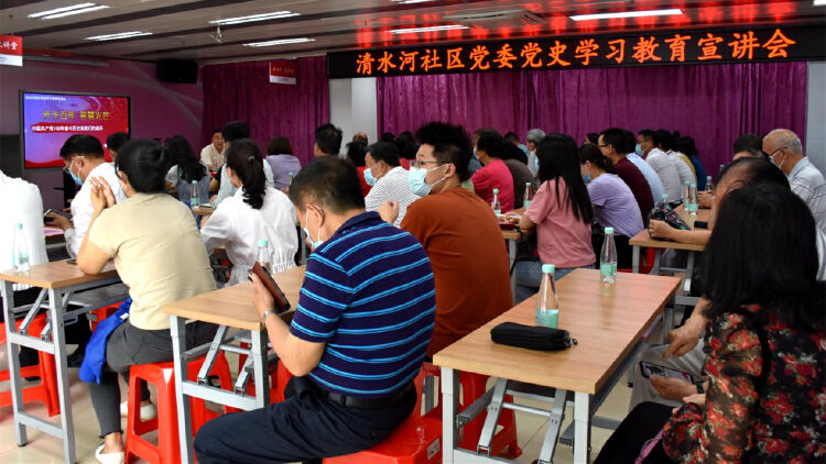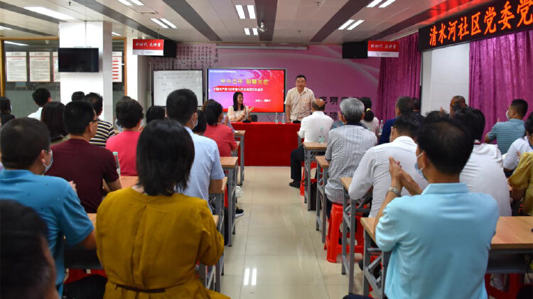 罗湖家园网讯:3月31日下午,罗湖区清水河街道清水河社区党委在社区新时代大讲堂举办“芳华百年,智慧光芒”为主题的党史学习教育宣讲会。