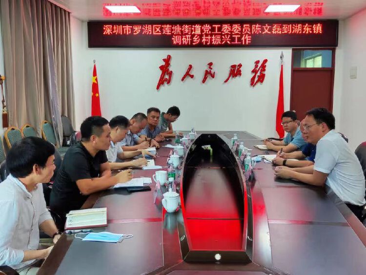 罗湖家园网讯:日前,罗湖区莲塘街道党工委委员陈文磊带队赴陆丰市湖东镇调研基础建设及村容村貌治理情况,并与陆丰市湖东镇党委书记黄少卿、副镇长朱大溢等镇领导及工作队进行座谈,研究进一步做好乡村振兴工作的具体措施。
