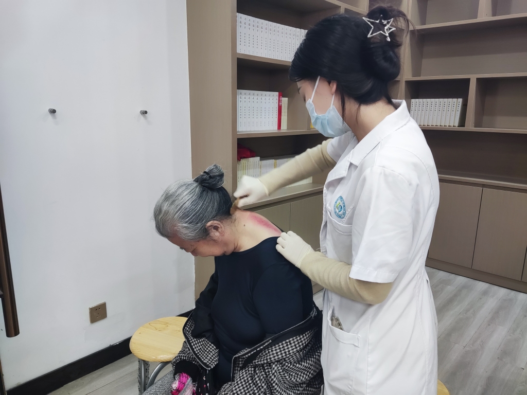 除了精彩的讲座,活动现场还设置了中医技术体验区,包括耳穴压豆、穴位贴敷、中药封包和刮痧等多个项目。这些传统中医疗法以其独特的疗效和舒适的体验,获得了居民朋友们的喜爱。“贴上之后,感觉肩颈都松动灵活了不少!”陈大姐向工作人员说到。