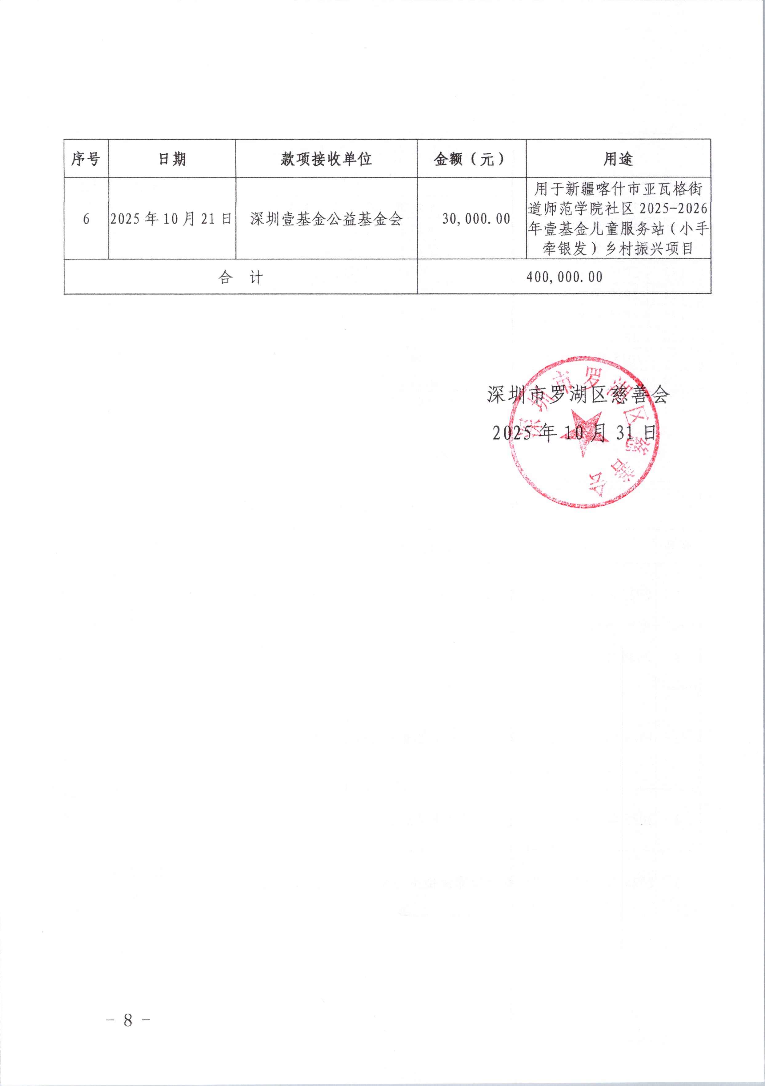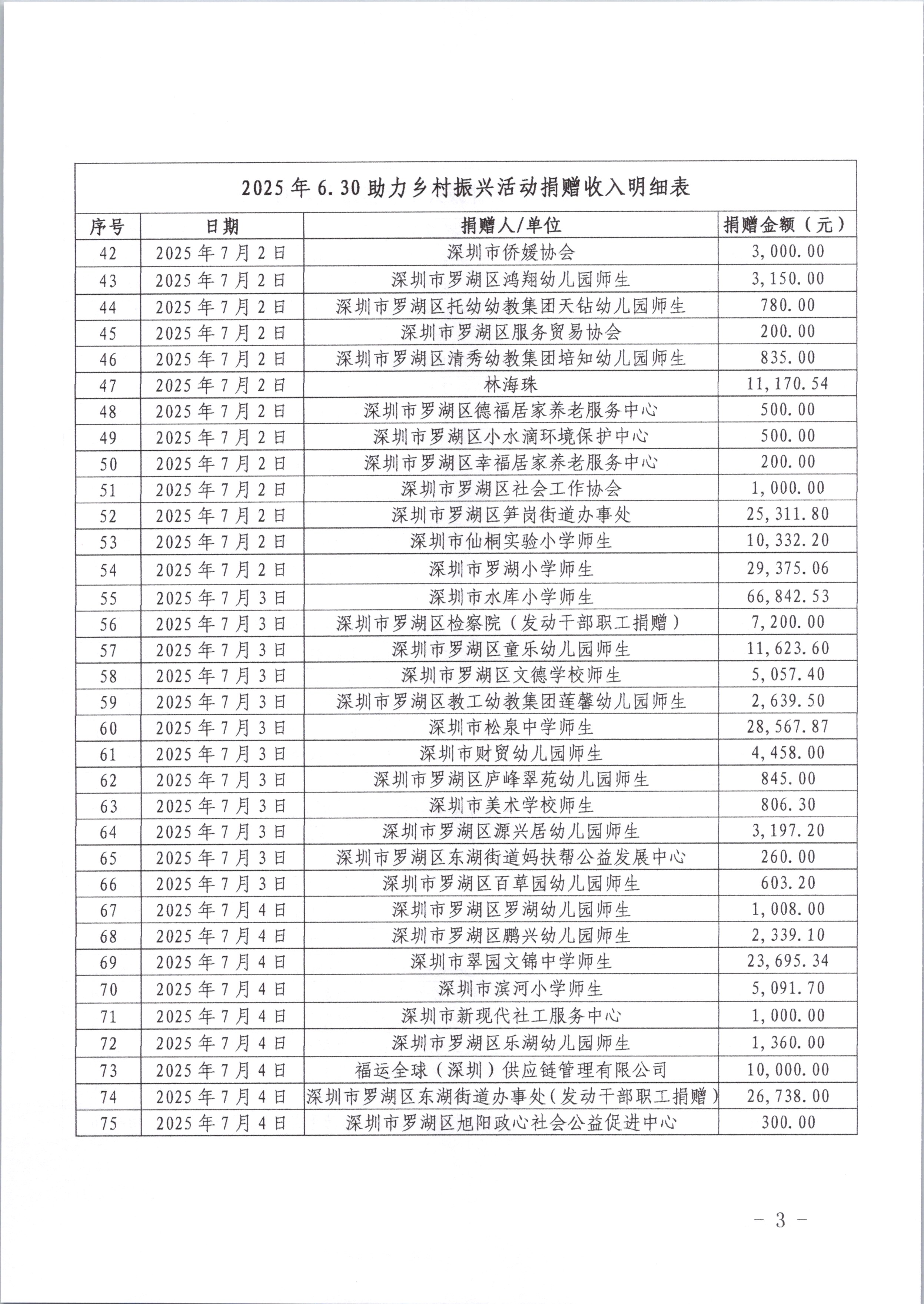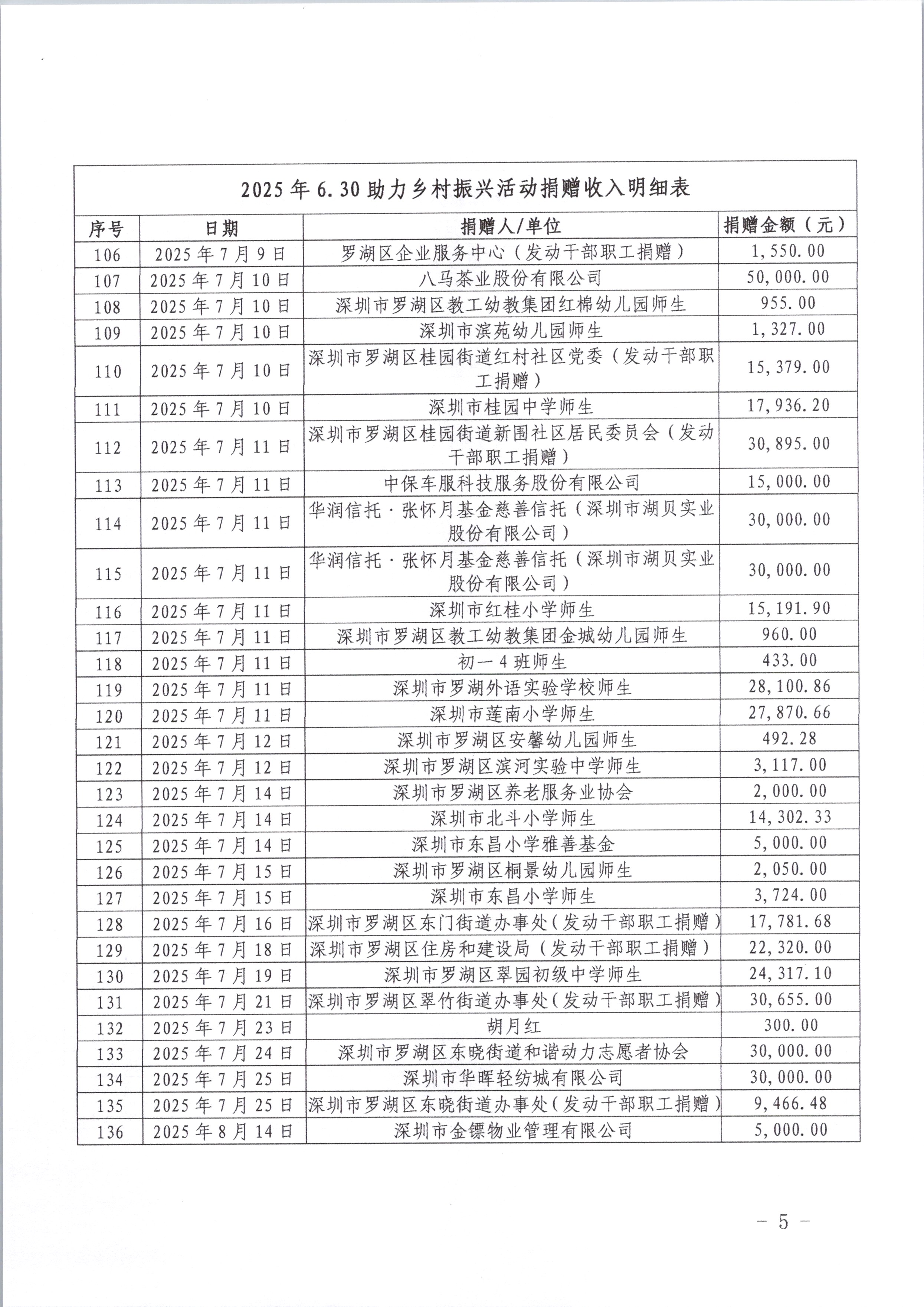 罗湖区2025年6·30助力乡村振兴活动收支情况公示(一)