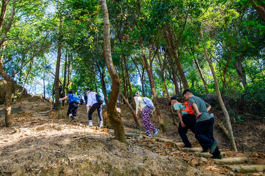如今,鲲鹏径已成户外爱好者心中的“金字招牌”,吸引众多市民游客前来体验,带动深圳徒步休闲产业及相关消费增长。