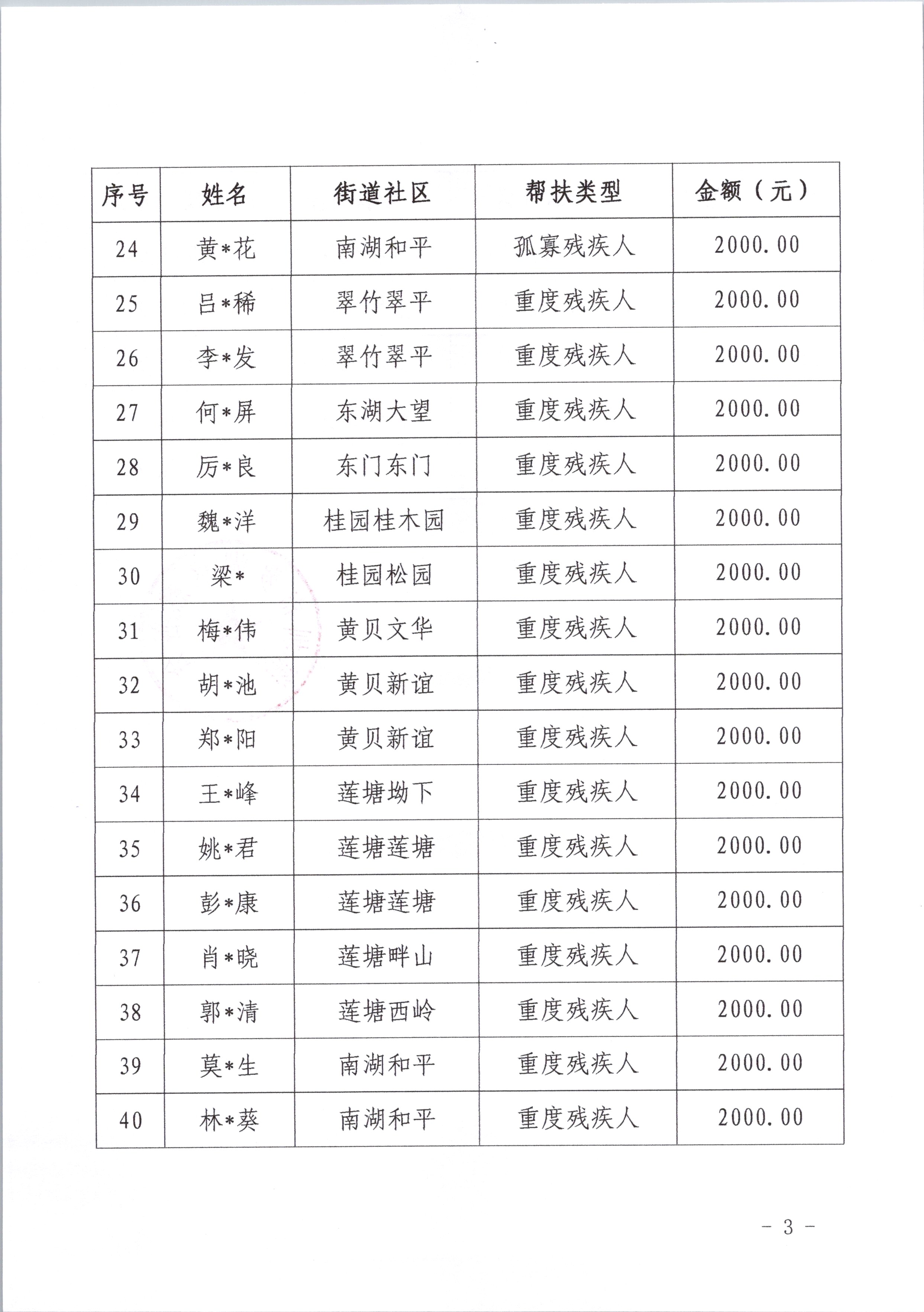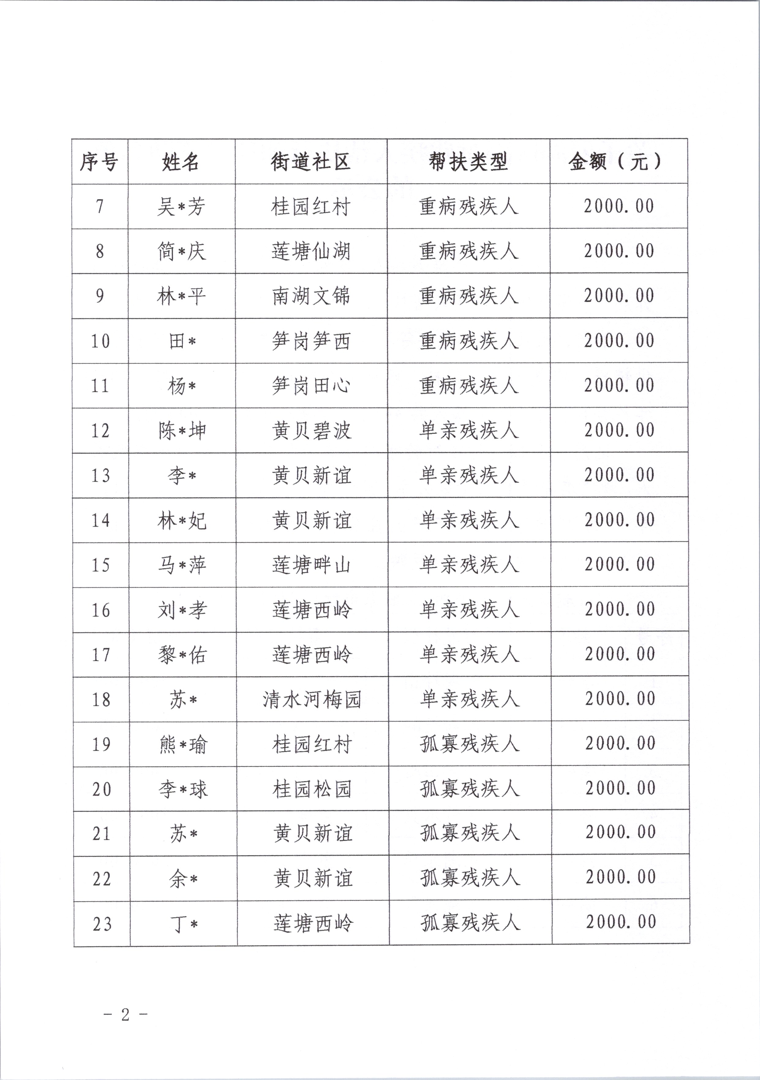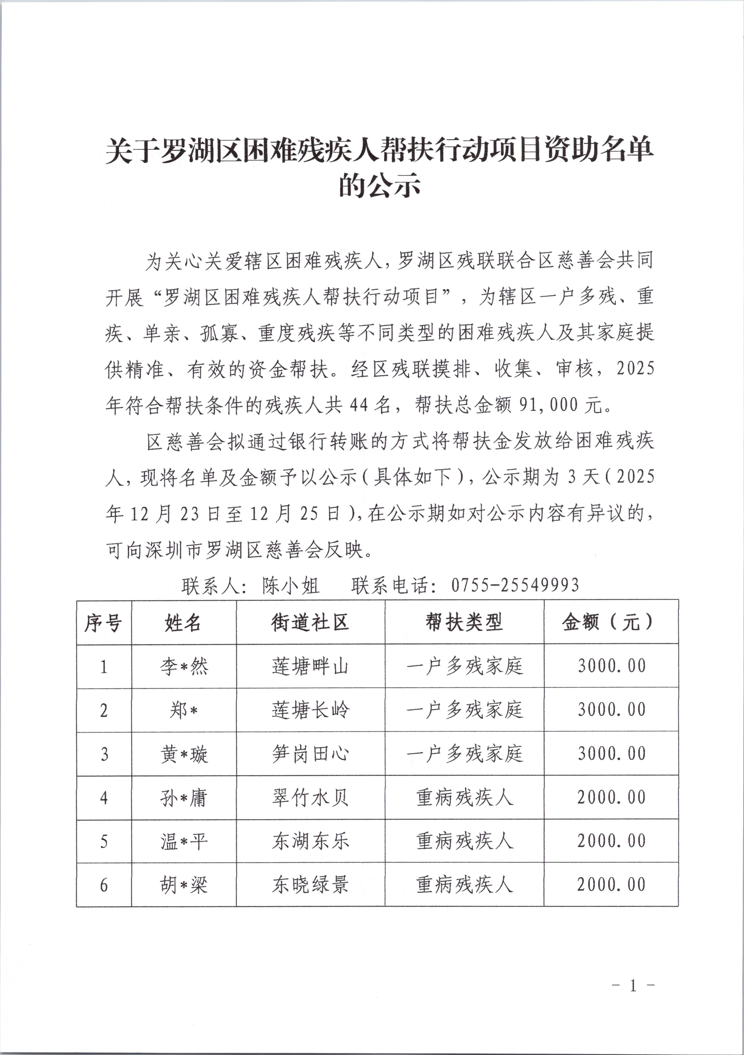 关于罗湖区困难残疾人帮扶行动项目资助名单的公示