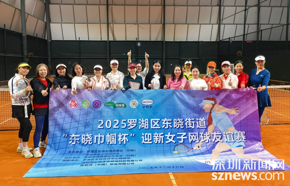 罗湖家园网讯:为生动展现东晓街道女性的巾帼风采,有力彰显新时代女性的蓬勃力量,12月18日,罗湖区东晓街道办事处(妇联)与罗湖区女子网球协会在东晓体育中心网球馆联合主办了首届“东晓巾帼杯”女子网球双打友谊赛。此次赛事旨在以球为纽带,搭建起女子网球运动的交流平台,吸引辖区更多女性关注健康、投身运动。