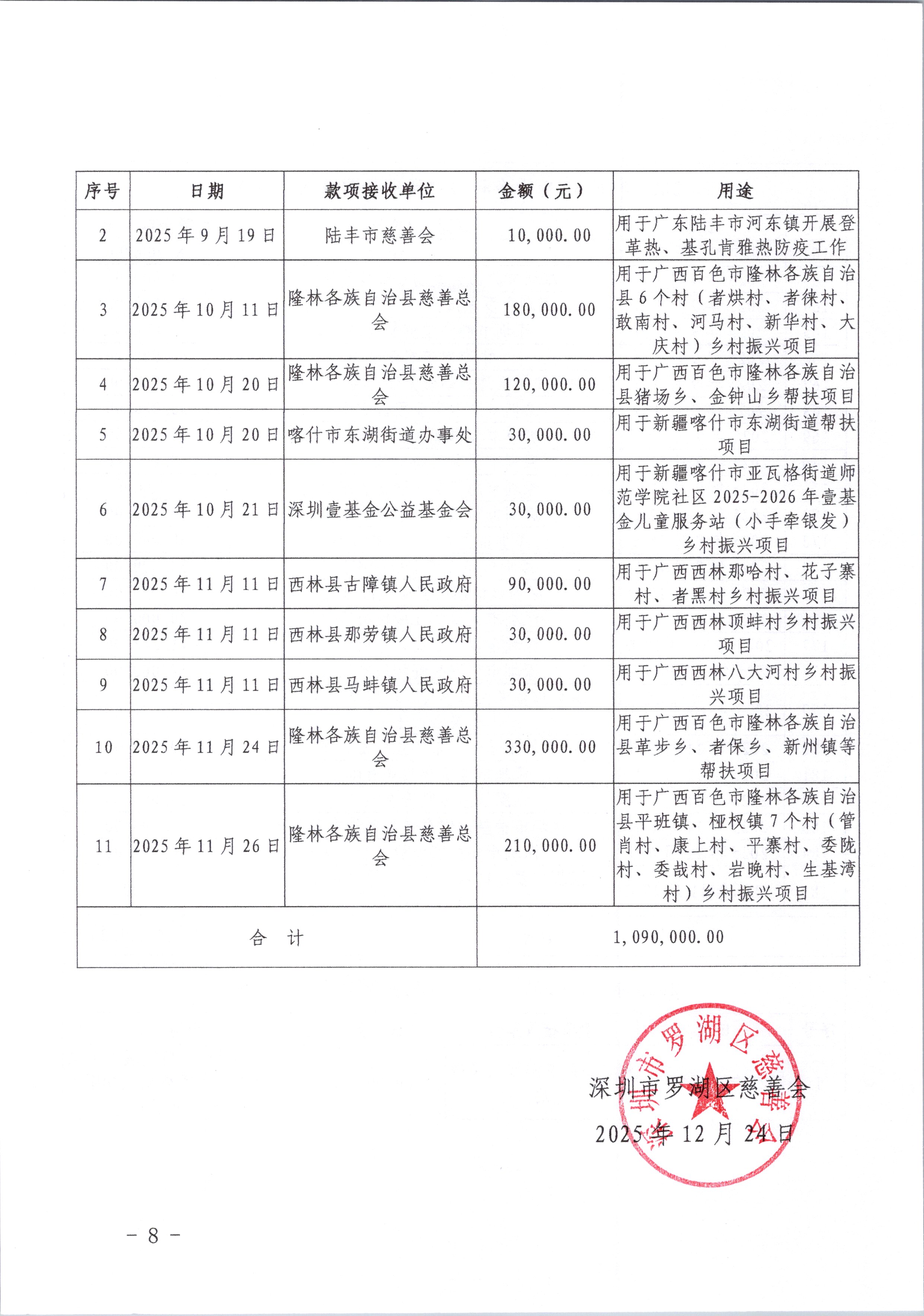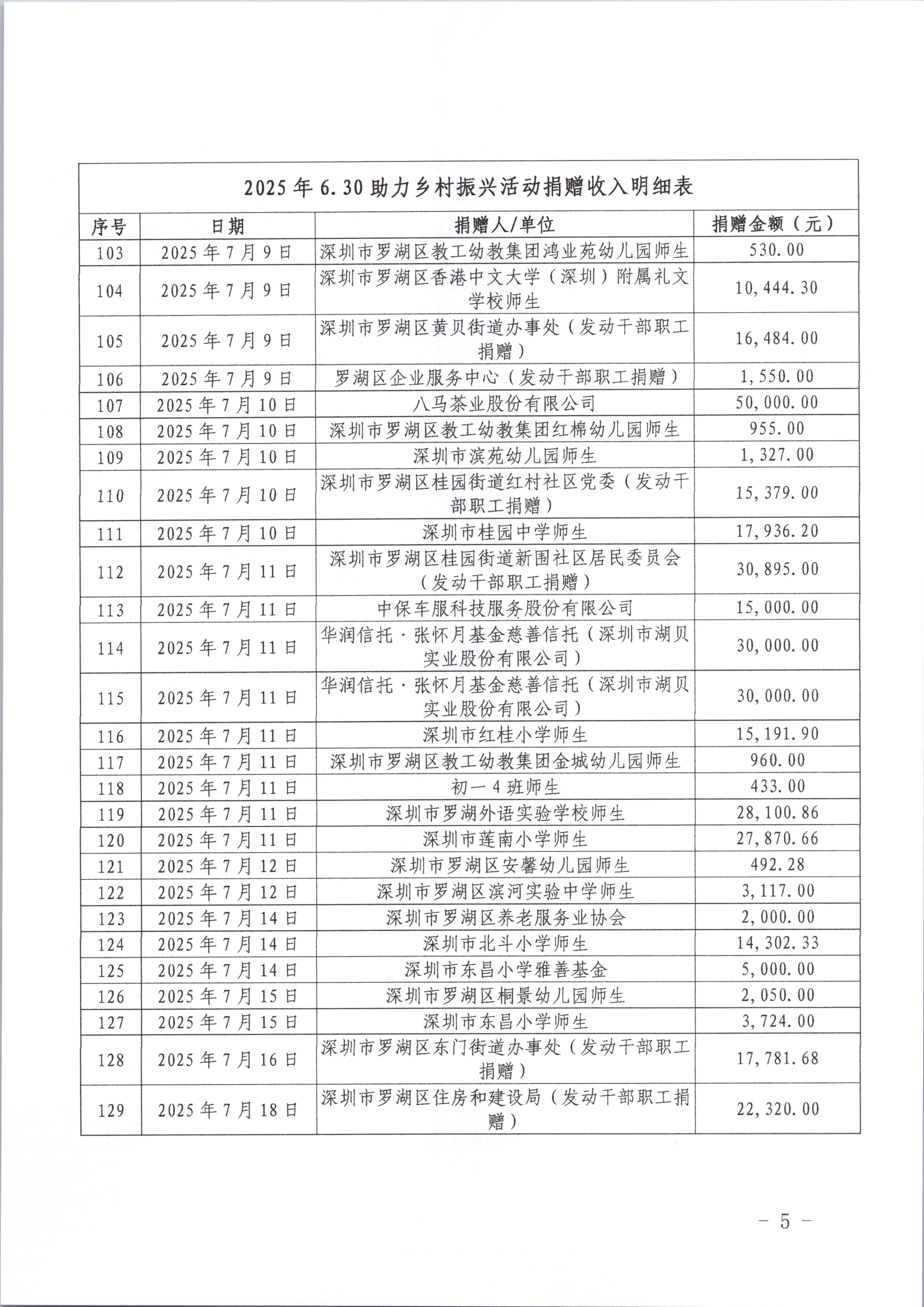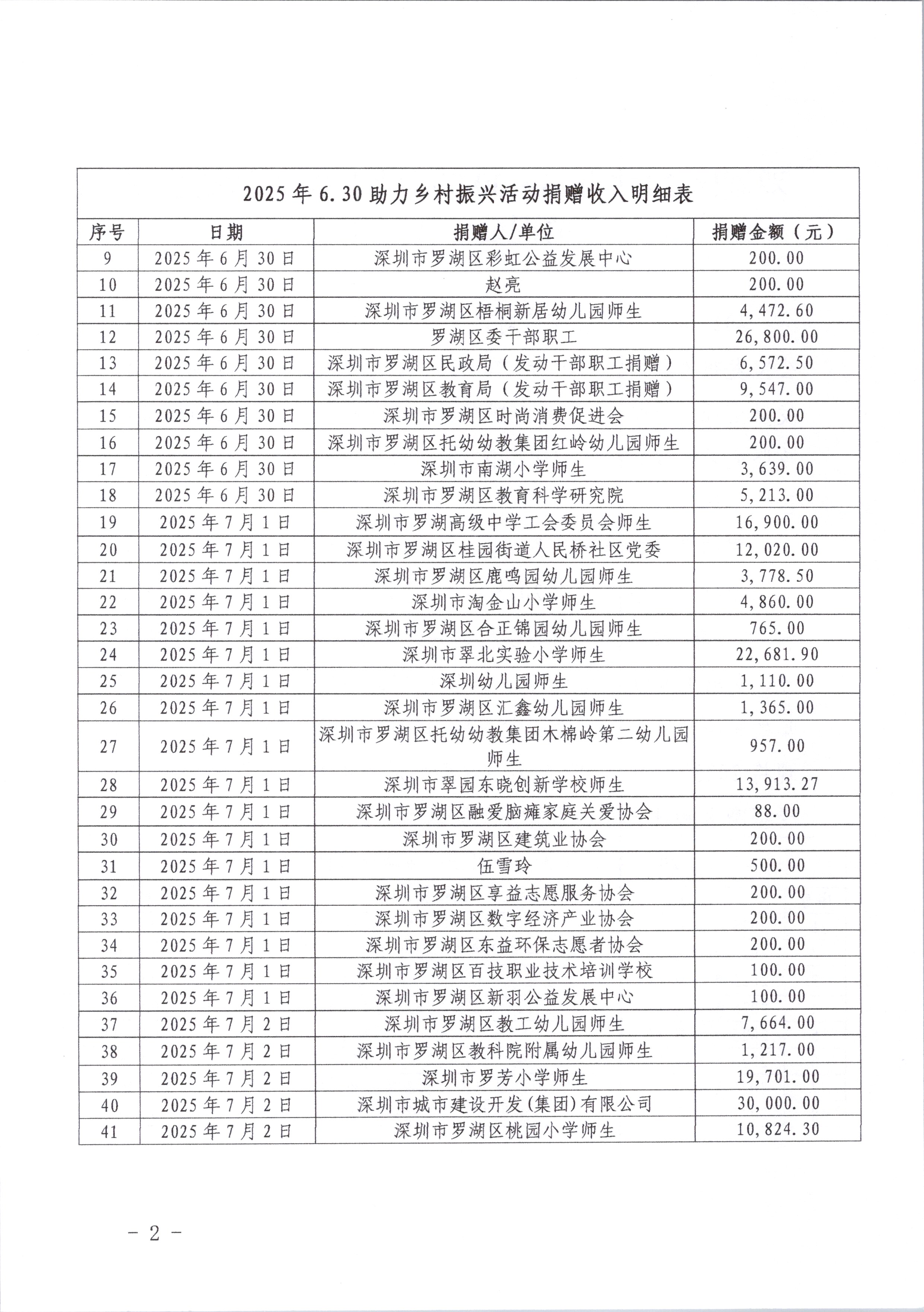 罗湖区2025年6·30助力乡村振兴活动收支情况公示(二)