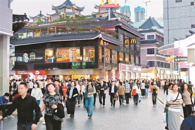 80根集照明、AI摄像头、广播、WiFi于一体的多功能智慧灯杆实现“多杆合一”,智慧消防系统已覆盖51栋重点楼宇。科技赋能不仅赋予传统商圈以现代化内核与安全感,更显著提升了整体吸引力——今年以来,步行街人流量累计7960万,同比上升13.95%。相较改造前的2023年上升131%,展现出持续焕新的商业活力。