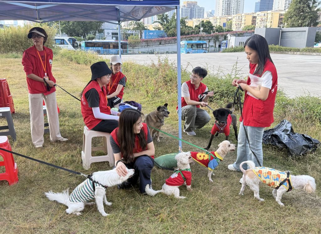 其中公益领养专区的设置格外引人注目,成为活动的一大亮点。此次活动联合了深圳市犬类管理协会正规动物救助机构,带来了10余只经过全面健康检查、完成疫苗接种的流浪猫狗。每只小动物都被精心照料得干净整洁,工作人员会详细介绍宠物们的姓名、年龄、性格特点等,方便居民了解适配。救助机构的志愿者现场向驻足居民讲解领养流程、后续饲养注意事项,重点强调“领养代替购买,养宠即是责任”的理念,引导意向领养居民理性养宠、用心护宠。不少居民停下脚步,温柔地与小动物互动,详细咨询领养细节,现场氛围温馨又治愈。