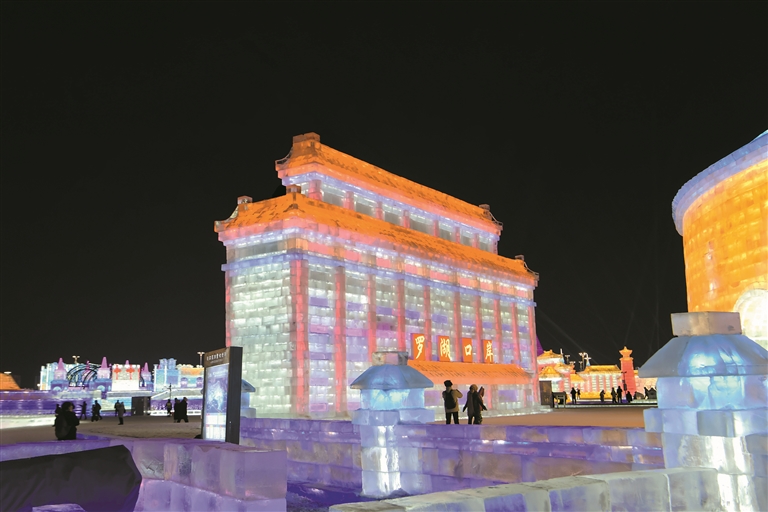 罗湖家园网讯:近日,哈尔滨冰雪大世界开园迎客,一座以深圳罗湖口岸联检大楼为原型的冰雕惊艳亮相北国冰城。