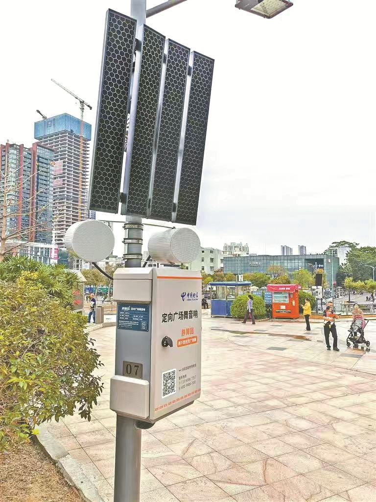 2023年3月,首台广场舞定向音柱在大运林公园试点启用。同年底,曾日均超千人活动、投诉不断的灵芝公园也一次性安装了13台定向音柱。据统计,设备启用后,新安街道广场舞噪声扰民的年度投诉量从800余件大幅下降至约25件,降幅超过96%。凭借此项治理创新,新安街道成为2023年“广东数字政府创新应用大赛”中唯一获奖的街道级单位。