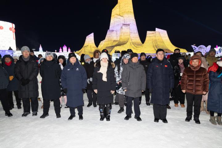 晶莹剔透的冰体在灯光映照下熠熠生辉,现场响起热烈掌声,为深哈两地文旅的深度交流合作增添了生动注脚。