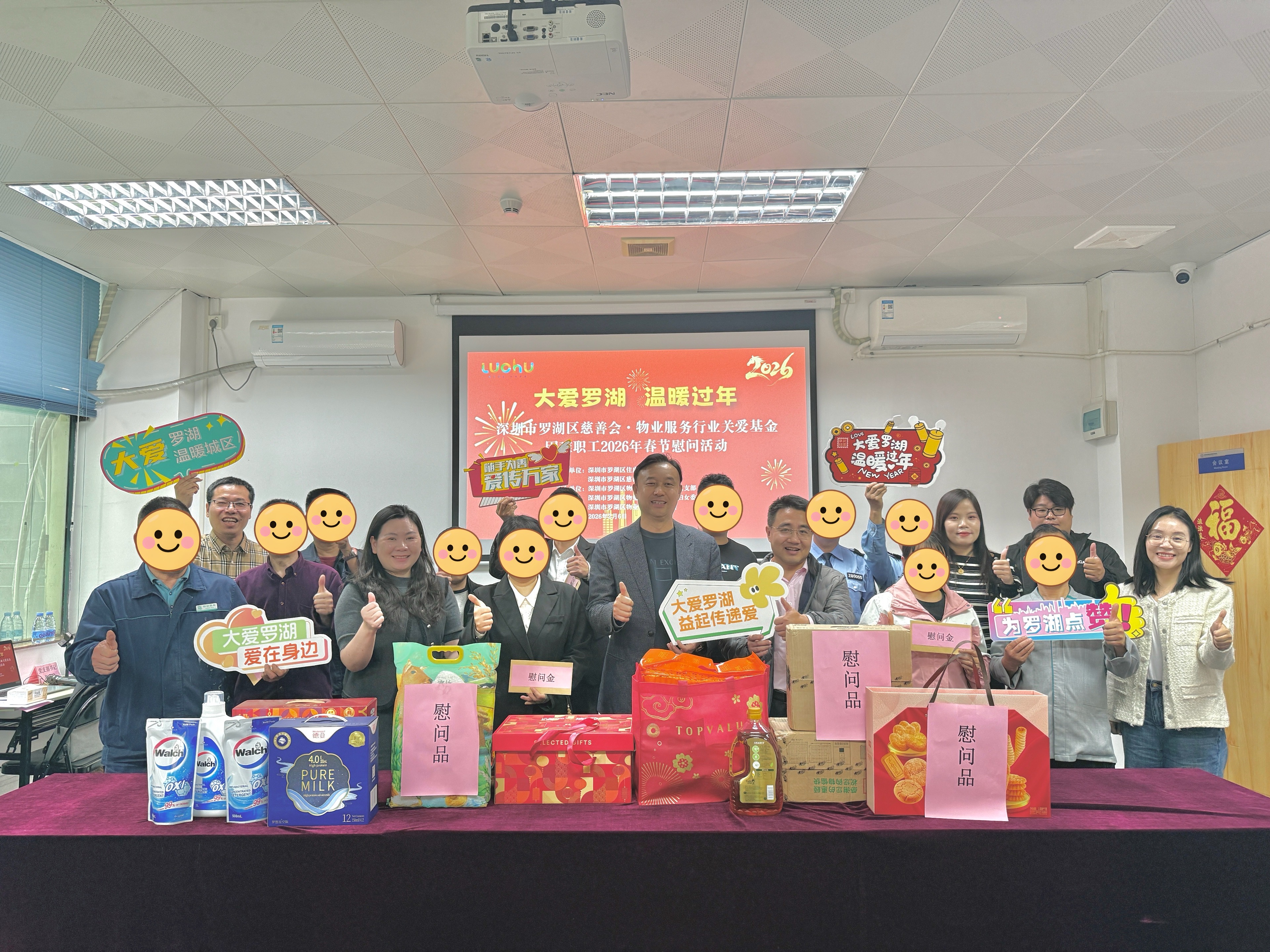 为传递物业服务行业与社会的双重关怀,提升从业人员幸福感,“深圳市罗湖区慈善会·物业服务行业关爱基金”举办“大爱罗湖 温暖过年”2026年春节慰问茶话会,邀请12名物业从业人员参与,共话新春、共叙温情,现场为他们送上新春慰问金、慰问品。这份关爱覆盖保安员、保洁员、维修工等多个岗位,让坚守一线的物业人感受新春暖意。