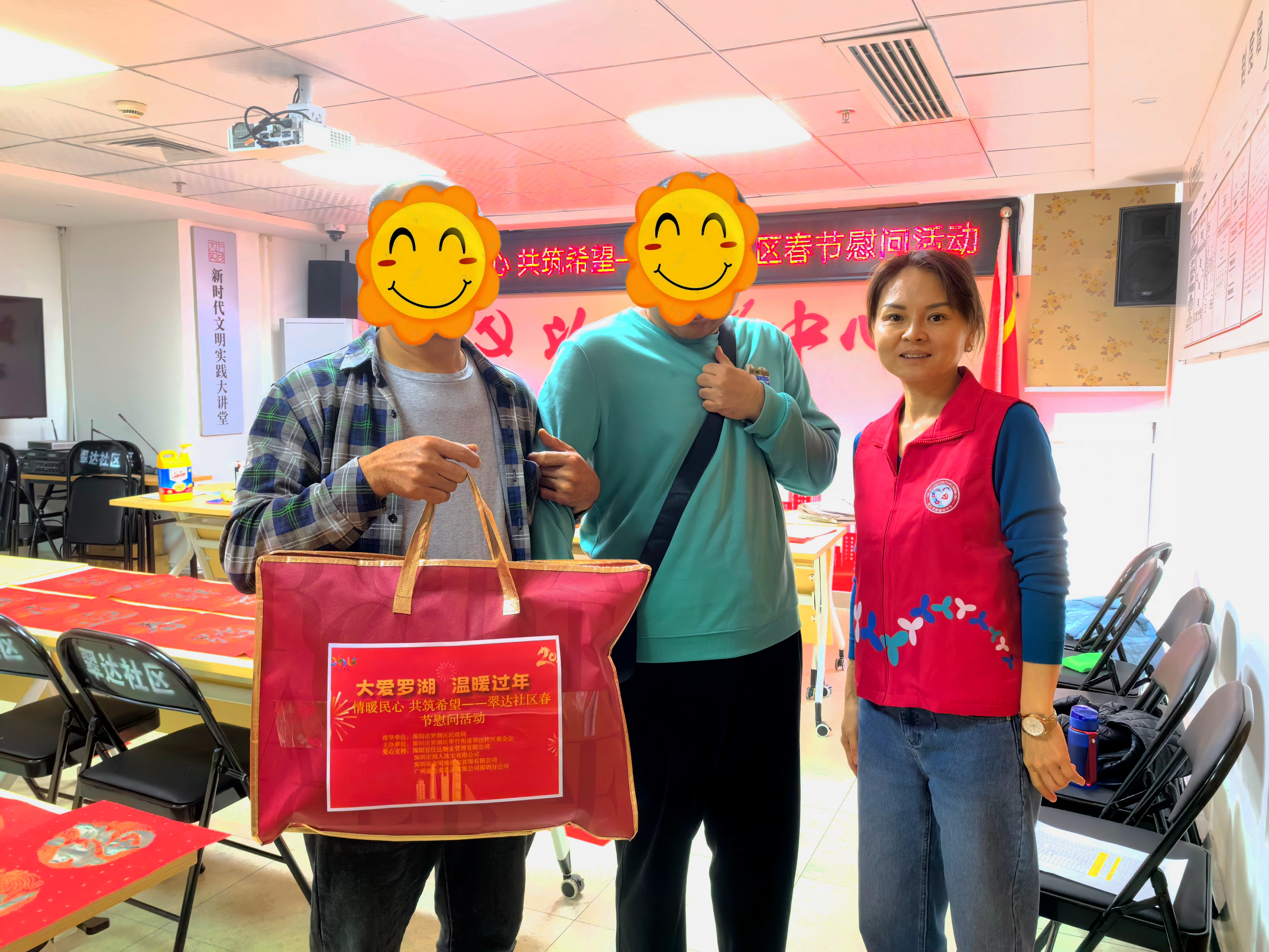其中,翠竹街道翠达社区基金开展“情暖民心 共筑希望——春节慰问困境家庭活动”,东门街道立新社区基金启动“传递温暖,情系社区——新春探访慰问行动”,清水河街道银湖社区基金组织“大爱罗湖 温暖过年”新春关爱活动。系列活动聚焦辖区困难家庭、留深环卫工人、独居空巢老人等群体,为他们送上慰问物资与新春祝福,让邻里温情在新春氛围中持续传递。