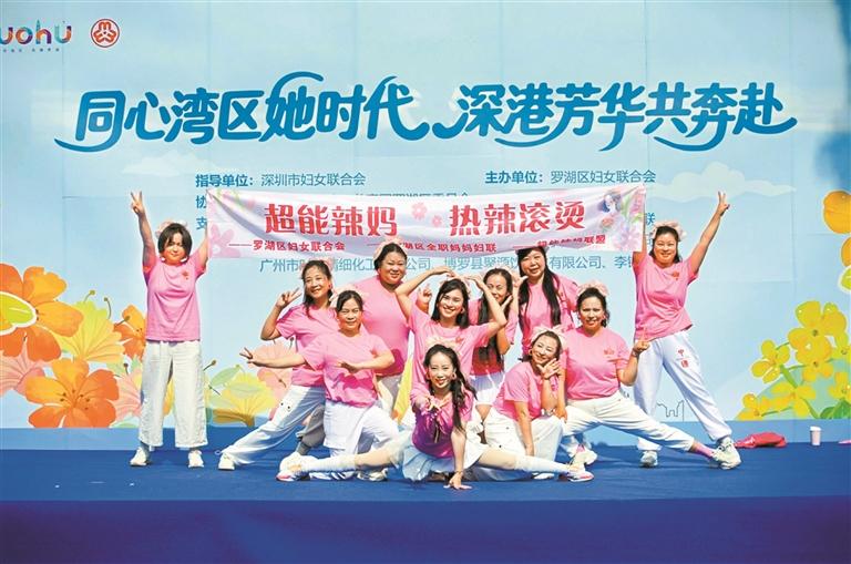 ▲活跃的全职妈妈组建的“超能辣妈联盟”在罗湖区妇联主办的活动上表演(左三为罗丽萍) 。受访单位供图