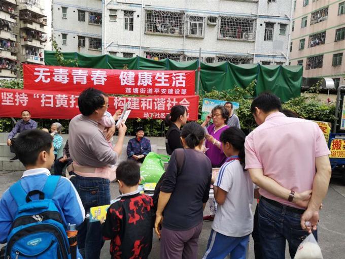 为了进一步加大禁毒宣传力度,切实提高广大居民群众识毒、防毒、拒毒的意识和能力,增加辖区群众对毒品的认知度,2019年4月3日上午,坳下社区工作站联合莲塘街道平安建设部在辖区开展“无毒青春 健康生活”宣传活动。