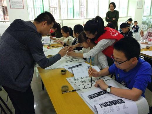 本次书法培训特邀社区公益书法老师卢文兵为社区青少年授课。在课程开始,卢老师就告诉孩子们“练习书法要有好的心态与有良好习惯,首先从握笔开始.....”课堂中卢老师耐心的为孩子们讲解握笔的姿势、站姿和坐姿等,示范每一个姿势和写字的步骤,并对每一位学员的练习进行指导。在书法练习中,孩子们品味经典,学习纠正每一个姿势,反复临摹学习汉字笔法。课上,传统文化在笔墨间传承流淌,在少年心中扎根成长。