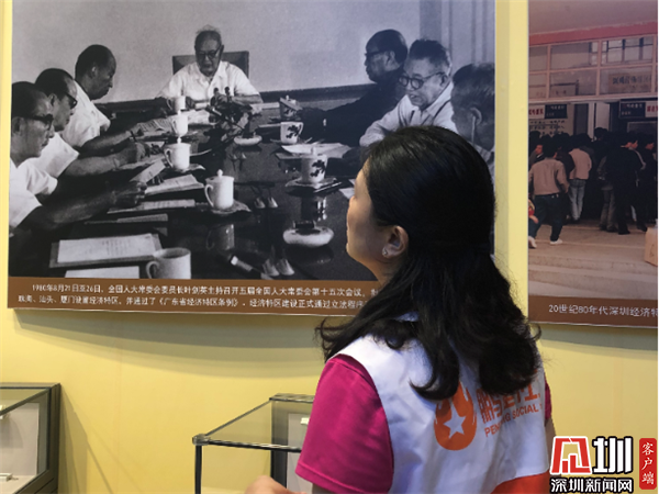 很多义工来深圳多年,也是深圳改革开放的建设者和见证人,馆中陈列的物品,叙述的重大事件都勾起了大家无限的回忆。“时间就是金钱,效率就是生命”这句话,承载了他们许多人的青春;“走在前列,当好窗口”不忘主席对深圳的嘱咐,他们仍然用火热的新在社区的方方面面贡献着自己的光和热。义工们在寻找展区展品打卡时,忍不住驻足观赏,拍照留念。