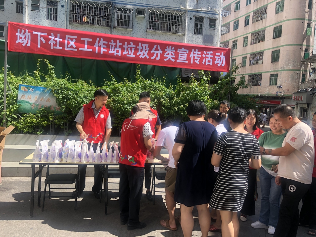 为了进一步提升辖区居民环保意识,大力推广生活垃圾分类文明行为,倡导绿色健康生活,2019年9月6日下午,坳下社区工作站在辖区组织开展垃圾分类主题宣传活动。