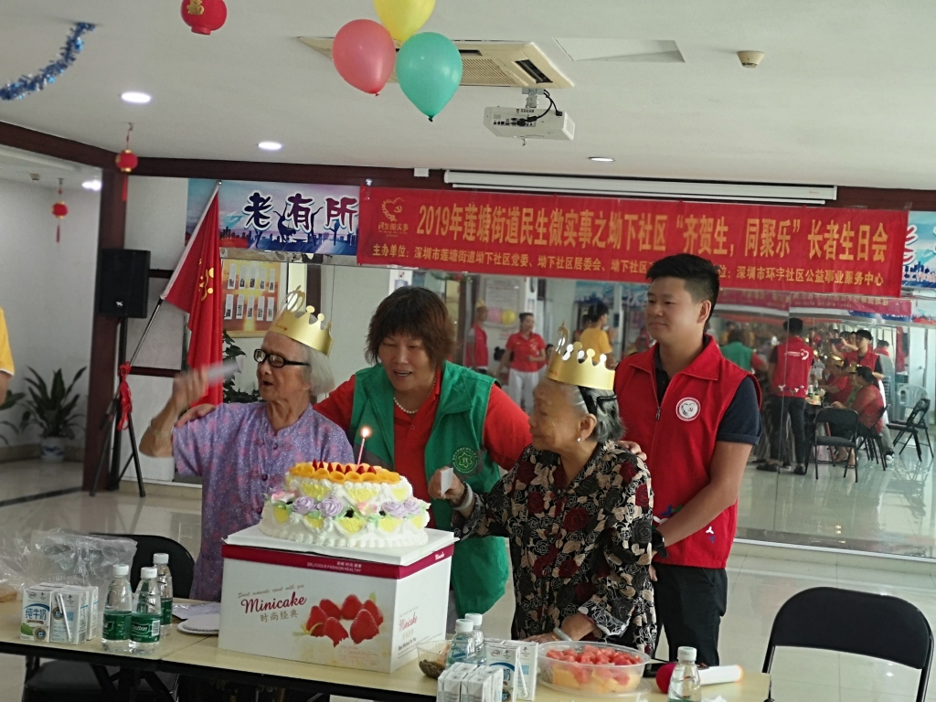 为促进社区老年人丰富生活和精神文化的交流,让老年人感受到社区的关怀、社会的关爱,2019年9月10日上午,坳下社区党委、工作站、居委会、老年人协会联合深圳市环宇社区公益事业服务中心,在坳下大厦六楼星光老年人之家举办民生微实事“齐贺生,同聚乐”长者生日会(第三场)活动。