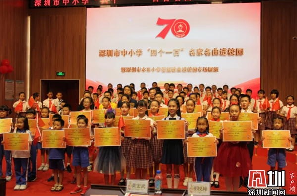 罗湖家园网讯:为进一步贯彻落实《关于进一步提升中小学生综合素养的指导意见》,深圳市教育科学研究院组织开展了“四个一”(百部名著、百首名曲、百部电影、百幅名画)进校园系列活动,日前,“百首名曲”进校园首场活动在深圳市水田小学正式拉开帷幕。