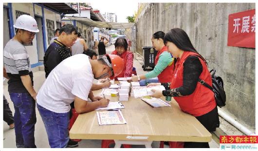 10月31日,在东晓街道木棉岭党委的组织下,木棉岭社区党群服务中心在上海建工工地开展一场“健康人生,全民禁毒”为主题的外展宣传活动。