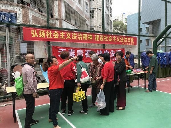 活动现场通过悬挂禁毒宣传横幅、设咨询点、发放禁毒宣传资料等多种形式向辖区群众广泛普及和宣传禁毒知识以及禁毒相关法律法规。活动现场发放禁毒宣手册、传折页及环保袋,引导群众自觉抵制禁毒品,树立健康的生活理念,现场居民纷纷响应主动把毒品知识手册带回家,表示要跟家人一起分享学习毒品知识,并且把毒品危害告诉身边的人。