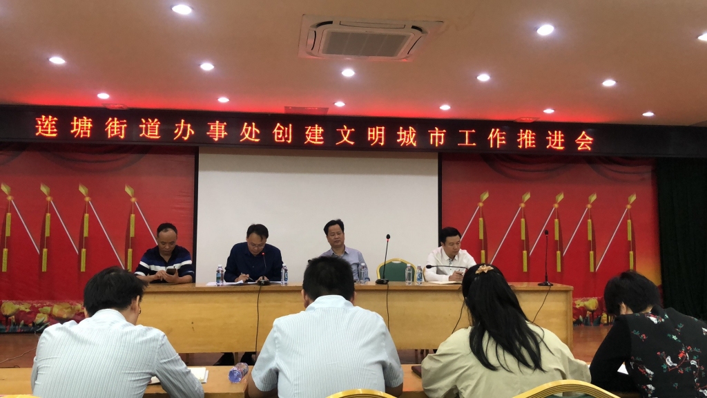 2019年 11月14日上午,莲塘街道在A会议室召开创建全国文明城市工作推进会,坳下社区党委副书记李远文、副站长钟高军、组织员刘晓华参加此次会议。
