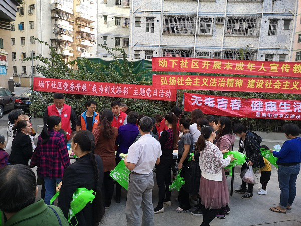 为加强未成年人的禁毒法治宣传教育,增强未成年人识毒、防毒、拒毒意识,进一步扩大禁毒法治宣传教育的社会覆盖面。2019年11月20日下午,坳下社区工作站在辖区新亚洲超市广场开展“未成年人禁毒、法治宣传”为主题的禁毒、法治教育宣传活动。