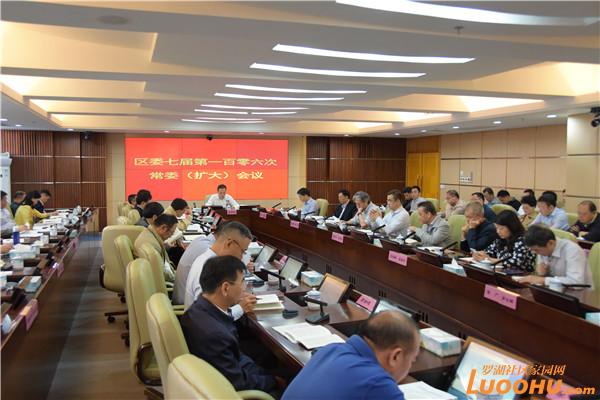 罗湖家园网讯:11月21日上午,罗湖召开区委七届第一百零六次常委(扩大)会议,学习研讨《中共中央关于坚持和完善中国特色社会主义制度、推进国家治理体系和治理能力现代化若干重大问题的决定》,传达学习李希同志在中央宣讲团党的十九届四中全会精神宣讲报告会暨市厅级干部学习贯彻党的十九届四中全会精神研讨班开班式上的讲话精神,研究贯彻落实意见。会议由区委书记罗育德主持,区长刘智勇,区领导周益川、吕漫妮、赖武、宋延结合各自工作,作主题发言。