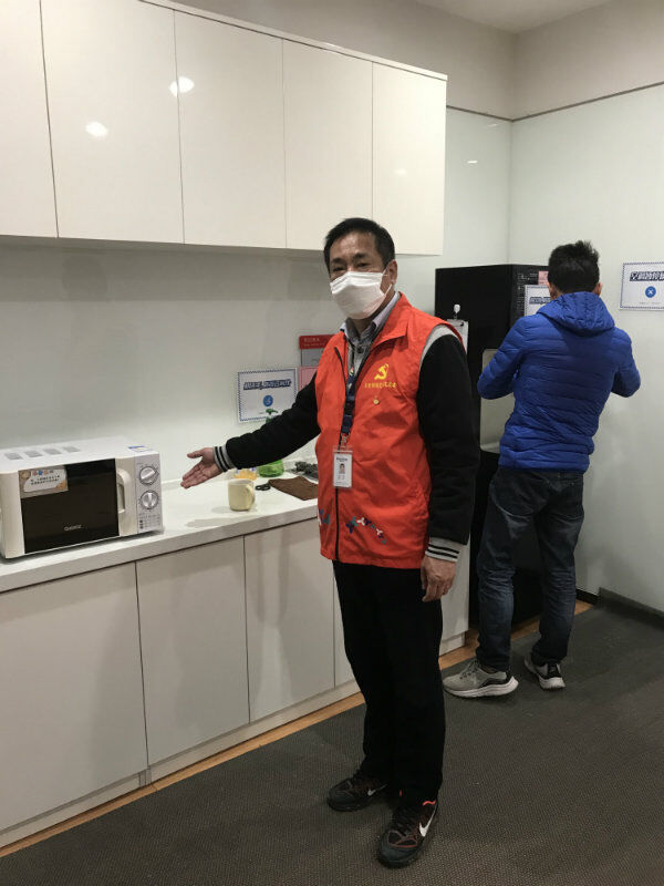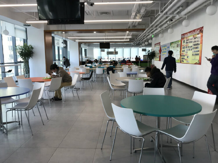 到达软通深圳公司中设广场办公区时已过中午12点,正是饭点时间,但此时位于大厦六楼食堂的就餐人员还不足20人。原来公司严格实行分就时餐制,并鼓励员工自带餐盒,每个楼层配微波炉,避免餐厅人员过多集聚。公司在公共区域还配备了鞋底消毒、免洗手消毒等设施,各项抗疫物资储备较为充足。姜李表示,疫情当前,软通动力深圳公司正在努力做到复工、防控两不误,为坚决打赢疫情防控阻击战贡献自己的力量。
