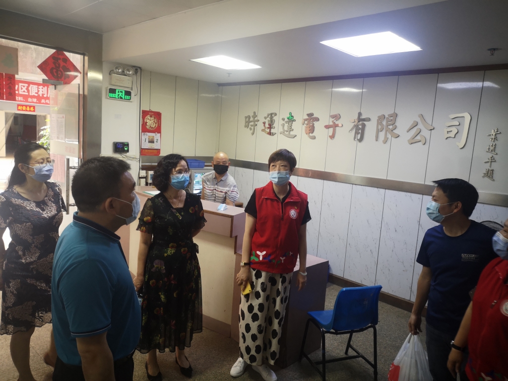 为全力做好新型冠状病毒感染的肺炎疫情防控工作,督促疫情防控工作落实到位,2020年6月2号下午,莲塘街道党工委副书记李光元、坳下社区第一书记麦丽梅、驻点团队成员等一行,在社区党委书记杨春丽陪同下来到辖区企业检查指导疫情防疫工作。