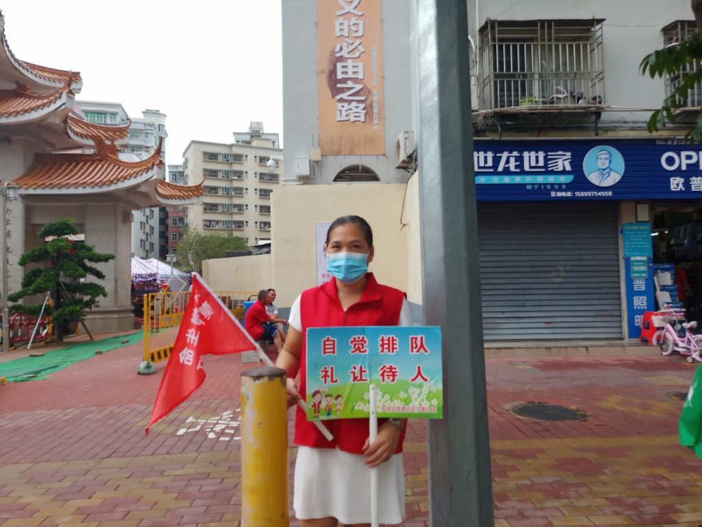 2020年8月5日上午,坳下社区工作站创建全国文明城市工作继续进行。早上8点整,在坳下村牌坊十字路口,身穿红色马甲、手持宣传牌的文明交通志愿者们正在有条不紊的劝导指引交通秩序。