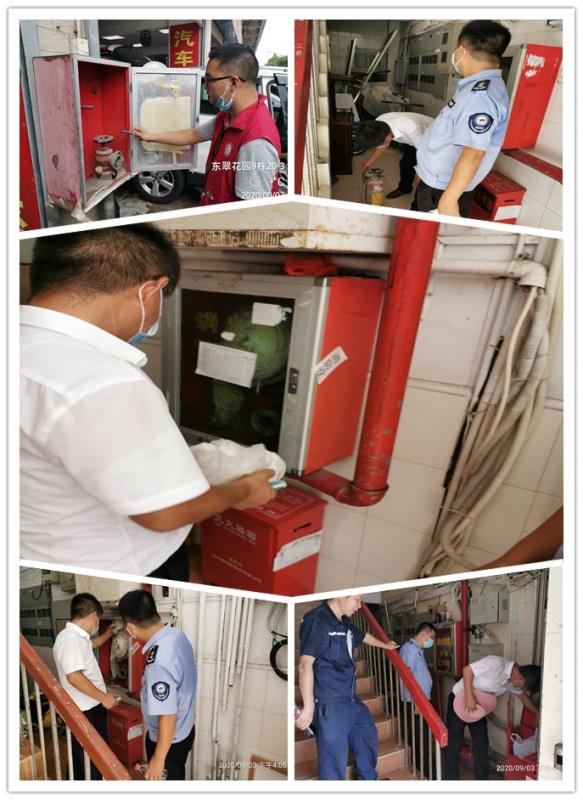 2020年9月3日,玉龙社区继续组织社区工作人员、各物业负责人深入小区检查消防安全工作,检查消防通道是否存在违规占用情况,消火设施是否被遮挡、消火栓零部件是否有损坏、缺失,水压情况是否正常进行了全面检查与记录。针对存在的问题责令小区负责人及时整改。