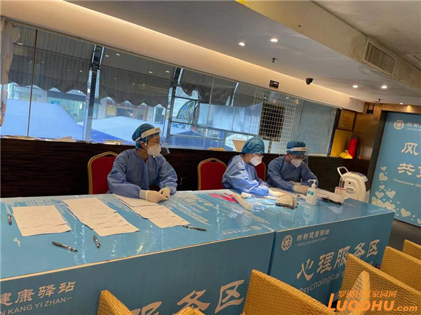 心理健康服务团队正在心理服务区等待为隔离人员进行心理评估。