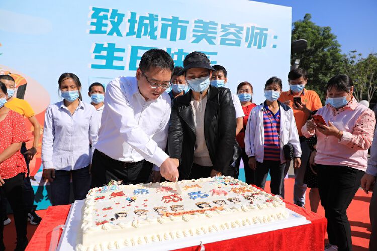 集体吃蛋糕、拍全家福、航拍“心”造型……城市美容师们,今天,你们是最美的“寿星”!