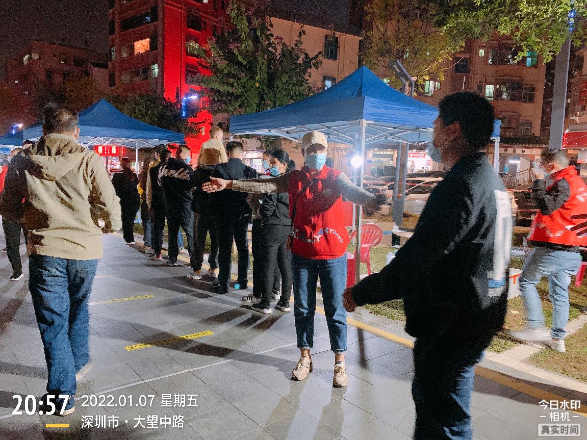 她们与罗湖区、东湖街道办下沉干部,社区工作人员、股份公司民兵、党员、义工等各支队伍一起,发扬先锋精神,发扬不怕苦、不拍累,坚决奋战到底的精神全力以赴,力争今晚核酸检测全覆盖。