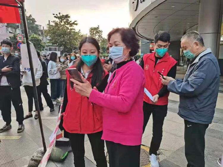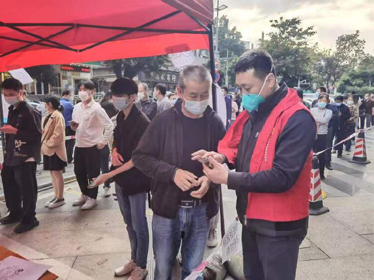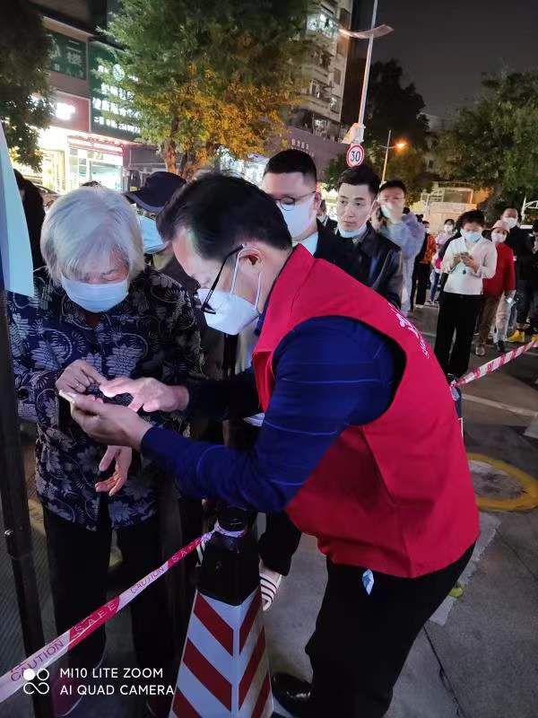 1月7日上午,当接到下沉一线参与疫情防控工作通知,无需任何动员,该局党员干部纷纷主动请缨要求到社区去,该局迅速成立了党员先锋队赶赴指定地点开展工作。据了解,桂园鸿翔花园、东晓IBC商业中心都是人流量大,在全罗湖检测人数最多,检测压力巨大的点位,另外几个居民小区点位的特点是老年人、小孩比例较大,需要协助老人用手机填报资料,要求工作人员耐心细致,几天下来,个个声音嘶哑,声线“磁性十足”。连续几日,“罗湖城管党员义工”红马甲活跃在社区一线,始终以党员的标准要求自己,坚决服从下沉街道社区的统筹安排,带队局领导胡维衡、魏明来、林稳枝、夏李果、陈彬等同志坚持“级别归零”,关键时刻冲锋在前,在他们身上,我们看到了什么是党员担当。