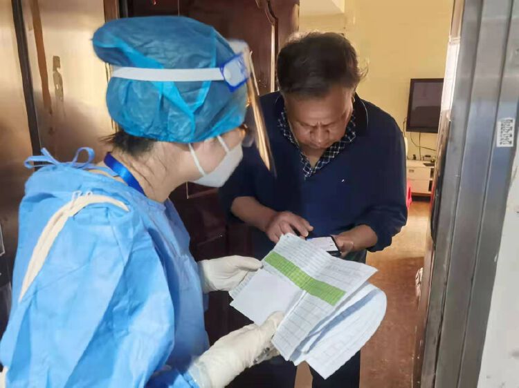 在微信健康群热火朝天的接龙核酸情况的时候,扫楼组同时也在保持与特殊需求人群的电话或上门联系,比如不会用微信、没有手机、不会讲普通话等等,确保这部分人群也能每日完成核酸。