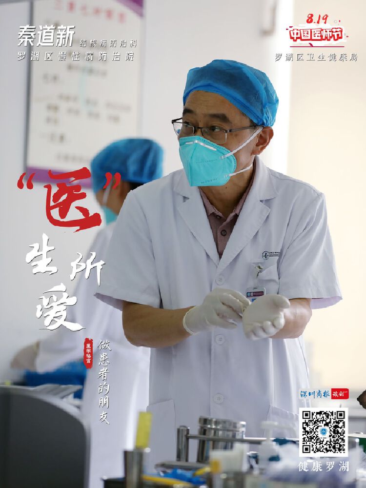 罗湖家园网讯:秦道新,罗湖区慢性病防治院结核病防治科主任。目前,和科室的12名同事一起,主要负责罗湖辖区结核病病人的发现、诊断、治疗、管理以及健康教育等系列工作。