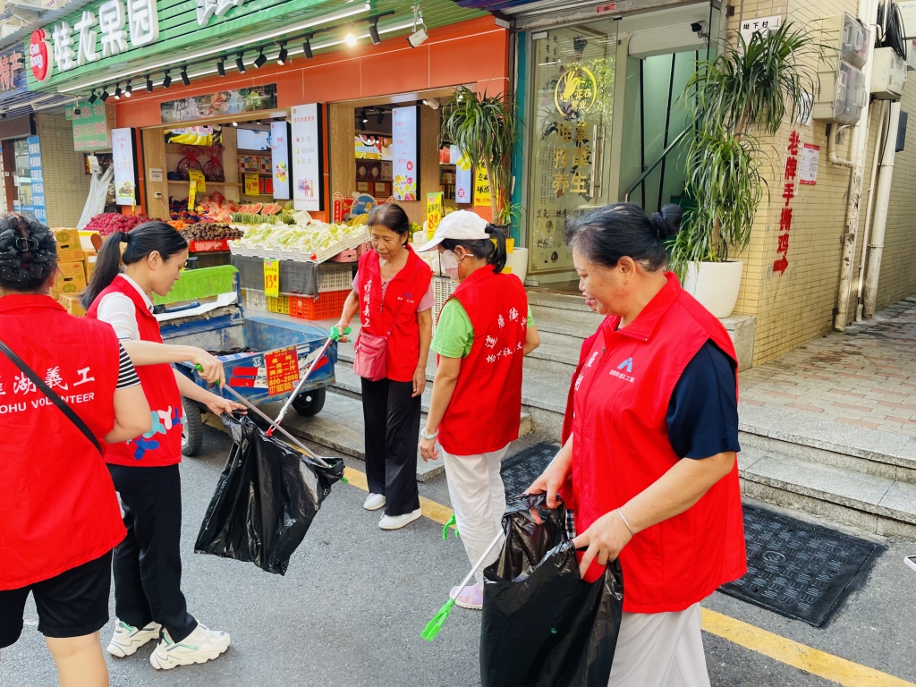 莲塘街道坳下社区老年人协会志愿者积极参加社区环境卫生宣传活动