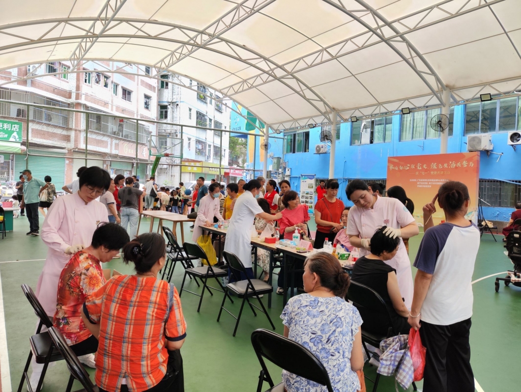 除了生态环境科普知识的展示,本次活动还邀请了罗湖区中医院的医生们为居民们提供免费义诊服务,脾胃、睡眠、内科、骨伤、脑病、口腔等多个科室的医生们忙的不亦乐乎,为居民们开展耳穴、穴位贴敷、中药封包、刮痧、火龙罐等服务,现场还提供血压血糖检测项目,让居民们在享受专业医疗服务的同时,也增强了健康保健意识。80岁的罗奶奶为社区的服务竖起来了大拇指,感叹党的关怀无时无刻都在温暖着大家的心。