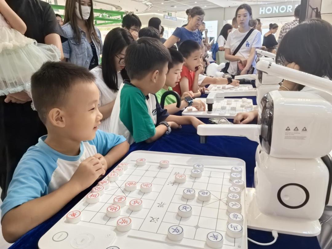 记者在罗湖区益田假日广场看到,广场中央的象棋对弈区就已经围满了热情的市民。残局竞速赛、象棋混双赛、象棋接力赛等趣味玩法让不少市民跃跃欲试。现场还设有科技展示区,共有4台元萝卜AI下棋机器人供棋迷们切磋交流。