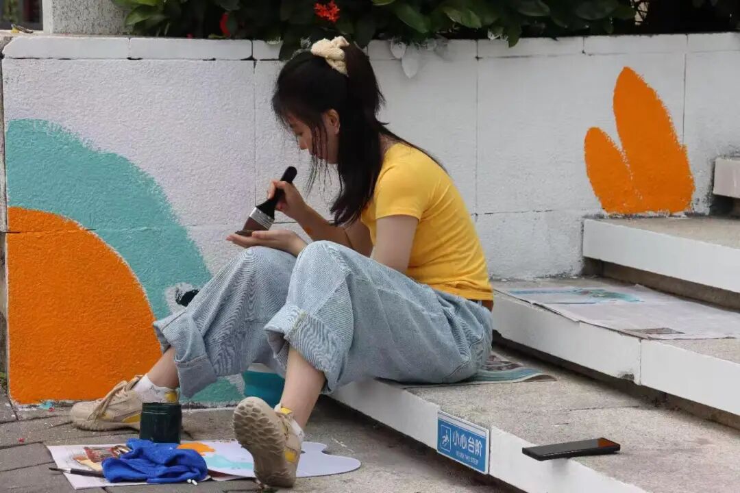 此次彩绘项目以“艺术点亮公共空间”为主题,背后凝聚着社区多元群体的艺术灵感。据悉,该项目由社区“能人”王老师主导设计,他秉持“亲近自然・和谐共生”的创作理念,巧妙地将童趣元素与党群服务中心周边环境相融合,精心绘制出设计稿。设计方案确定后,玉塘社区迅速联合深圳大学附属实验中学共同开启创作之旅。