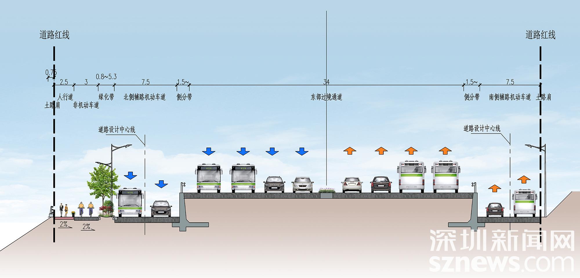 同时,项目与大望梧桐片区整体规划深度对接,建成后将实现北部拓展区和南部核心启动区的交通联系,打通片区内循环;还将拓展慢行空间,完善慢行网络,提供慢行分流路径,并通过海绵城市与绿化设计,打造兼具生态与休闲功能的“生态慢行路”。为最大限度减少对生态环境的影响,项目采用“路-桥-隧”组合方案,避免大规模填挖作业,实现交通建设与生态保护的协同推进。