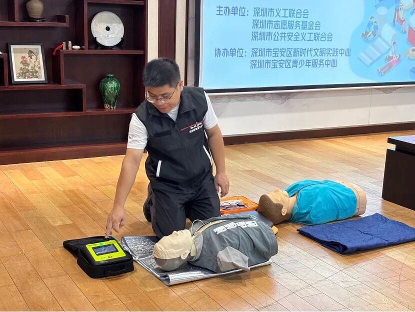 本次活动秉持“理论+实操”双轨教学理念,精心设置课程内容,涵盖心肺复苏、AED使用、气道异物梗阻急救等核心急救技能,以及鼻出血、烧烫伤、癫痫发作等校园常见急症的应对策略,旨在全方位提升青少年的应急救护能力,培养他们在面对突发状况时的冷静判断与科学施救意识。活动由深圳市志愿服务基金会、深圳市义工联合会、深圳市公共安全义工联合会主办,宝安区新时代文明实践中心和宝安区青少年服务中心协办。