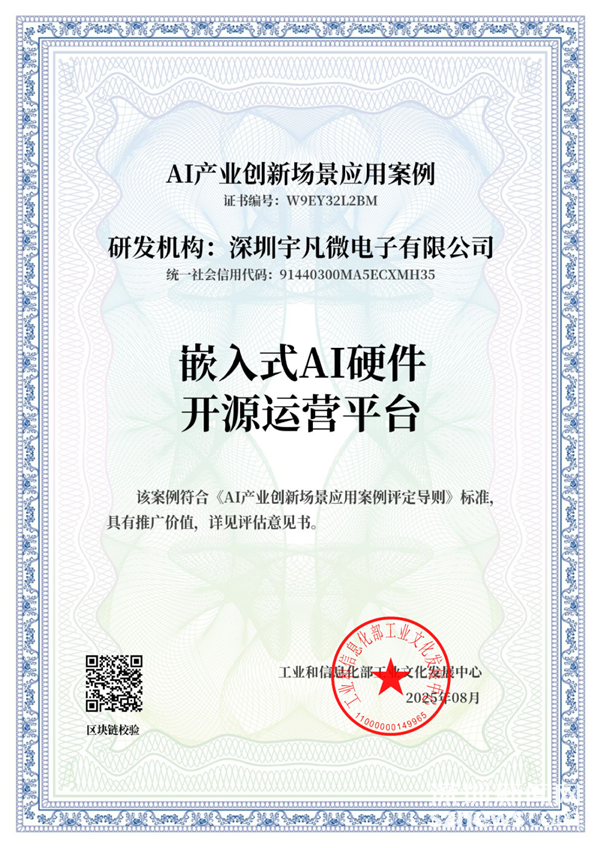 目前,该“嵌入式AI硬件开源运营平台”已获得工业和信息化部工业文化发展中心数字科技中心的认可,荣获第六批“AI产业创新场景应用案例”。