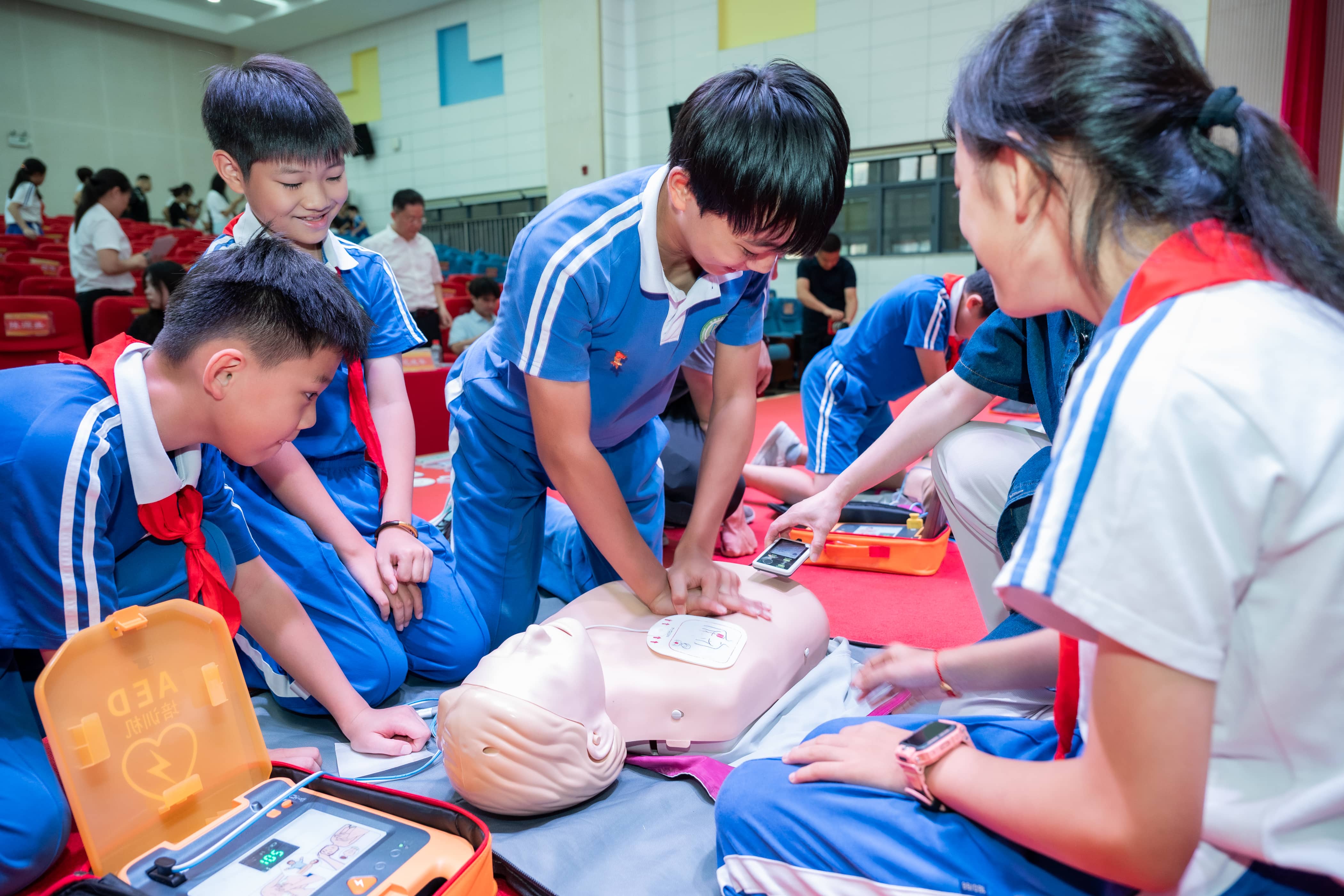 9月22日,为进一步推动急救教育向青少年群体延伸,在区民政局和区教育局的指导下,在周六福珠宝股份有限公司的支持下,“急救小英雄——罗湖少年急救联盟计划”首场活动在深圳市向西小学顺利举行。活动引入急救专业团队,通过理论讲解与实操演练相结合的方式,向52组亲子家庭传授血压监测、卒中识别、心肺复苏及AED使用等急救知识,助力构建“家校社”联动的生命防护网络。