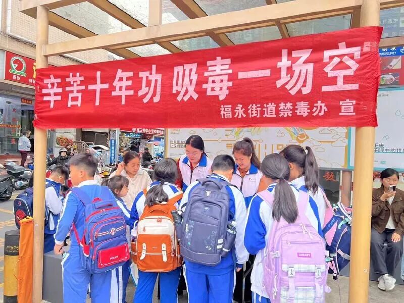 此外,为进一步扩大宣传覆盖面,社工们还化身“流动宣传员”,在学校周边的家长接送区、人行道、公交站点等地,向过往路人派发禁毒宣传资料,为大家答疑解惑,在校园周边筑起禁毒“防火墙”,共同守护一片无毒天空。