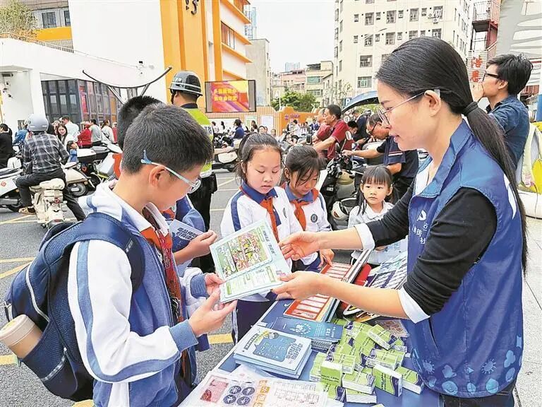 10月24日,龙华区民治街道工作人员走进行知实验小学,在校园秋季集市中打造“禁毒宣传专区”,并开展“无毒青春 阳光校园”禁毒宣传活动。