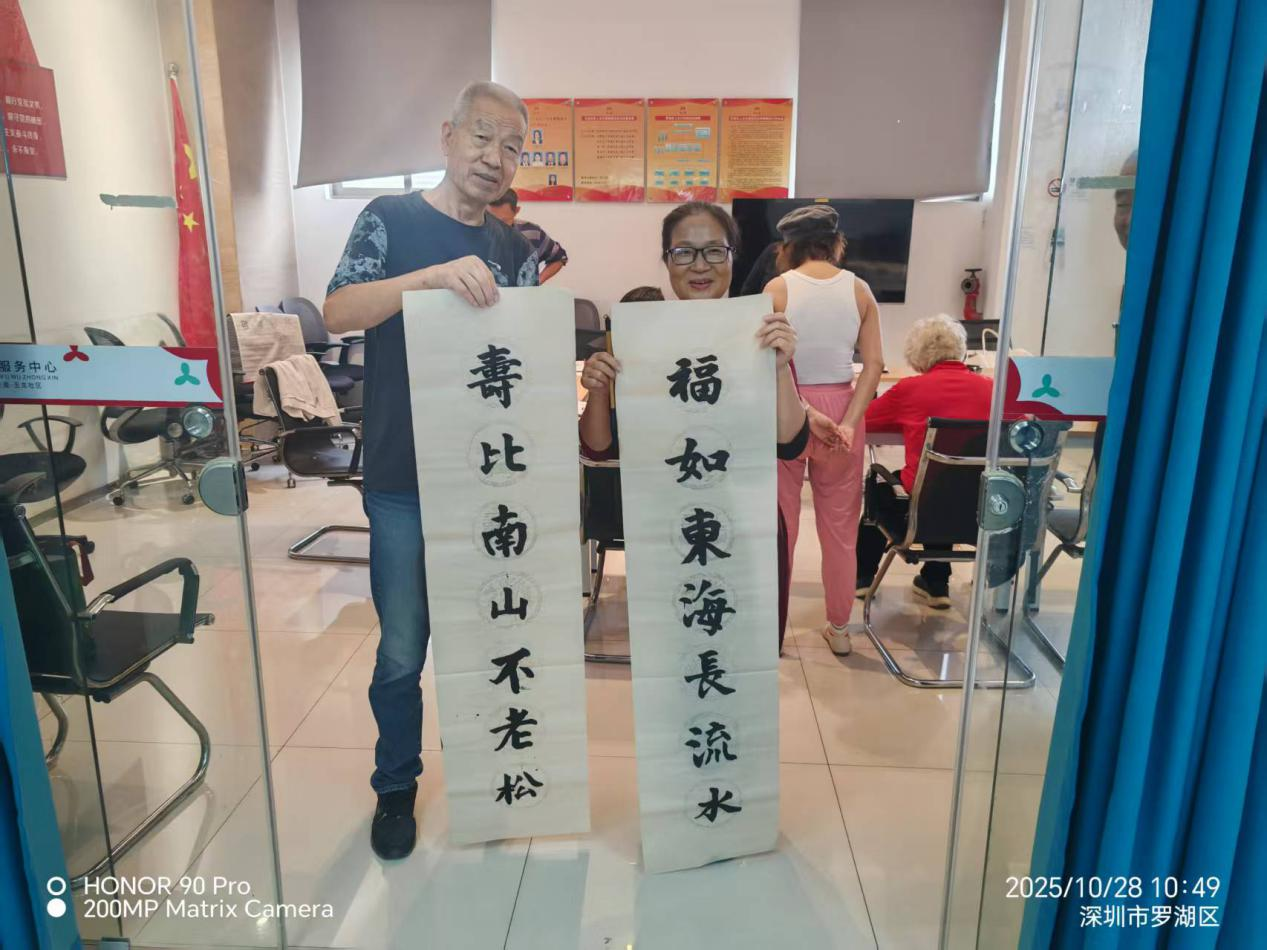 为丰富社区老年人的精神文化生活,传承中华优秀传统文化,2025年10月28日上午,罗湖区清水河街道玉龙社区精心策划了“九九重阳节,书法展风采”主题书法活动,10余位辖区书法爱好者齐聚一堂,共庆重阳佳节,传递美好祝福。