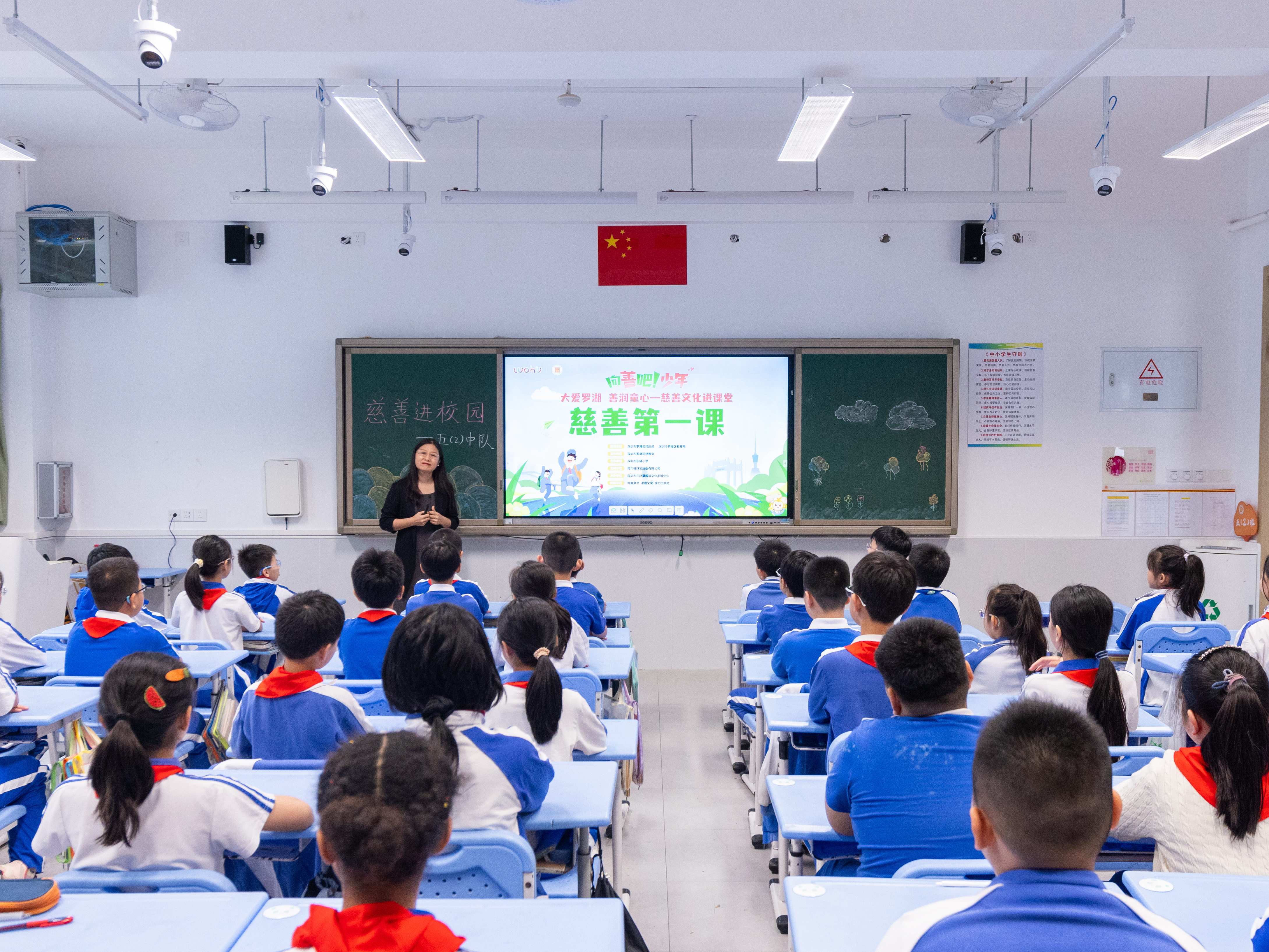 “向善吧!少年”公益计划由周六福珠宝股份有限公司倾力支持,围绕“慈善第一课”校园课堂、“纸等你来”废纸回收、罗湖童乐慈善义卖、“急救小英雄”校园培训四大核心品牌活动,将慈善文化融入校园生活,助力罗湖少年知善、行善、扬善。此次“慈善第一课”助力学生完成从“知晓慈善”到“愿为慈善”的认知跨越,将“向善”种子深植校园。这些萌发的善意将持续转化为实际行动,为罗湖慈善文化传承注入青春力量。