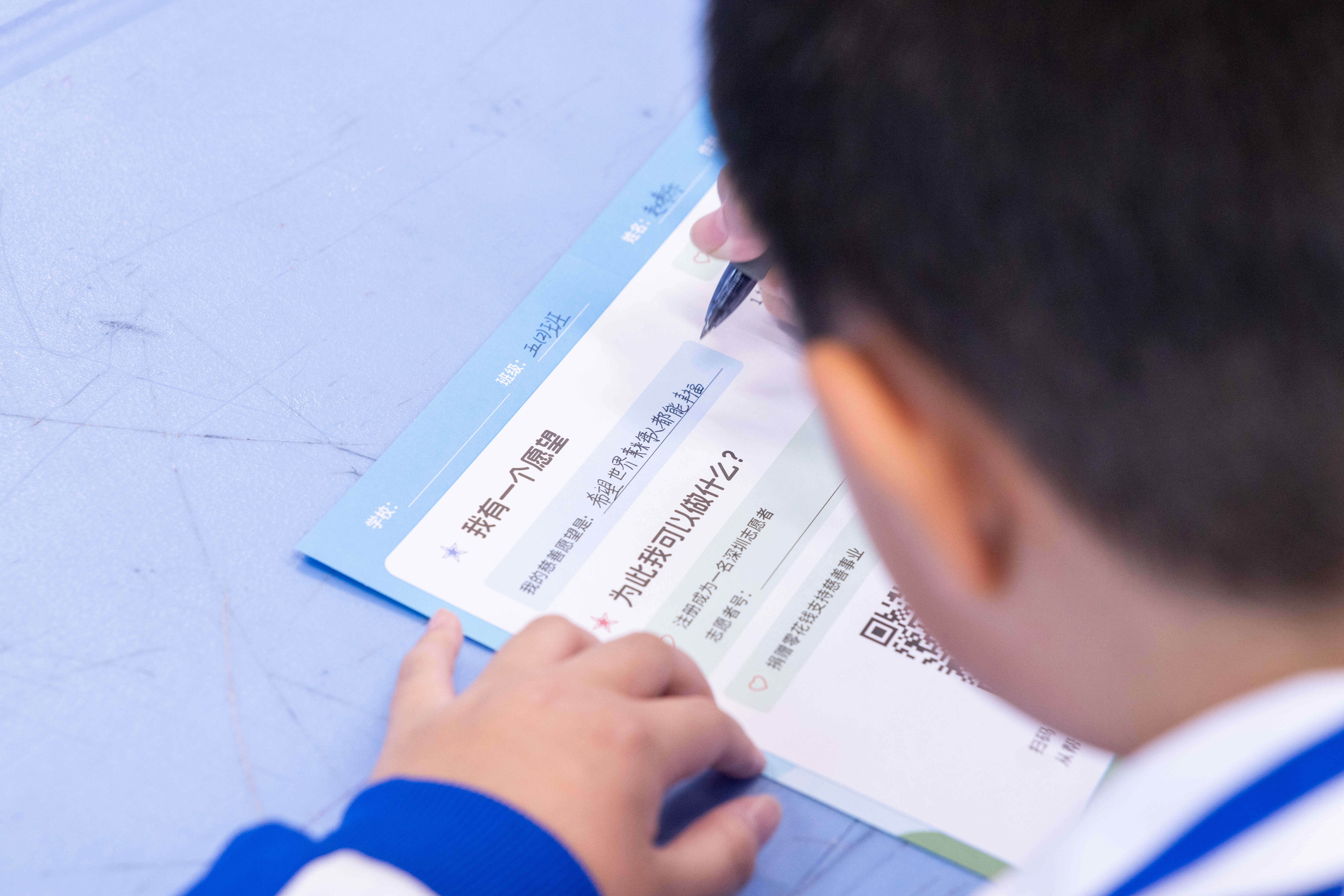 90分钟的讲座带来从认知到行动的完整体验。尾声阶段,同学们认真填写“我有一个愿望”清单,写下慈善愿望与行动计划,有的选择注册志愿者,有的计划参与义卖或环保行动,将课堂所学转化为个人承诺。